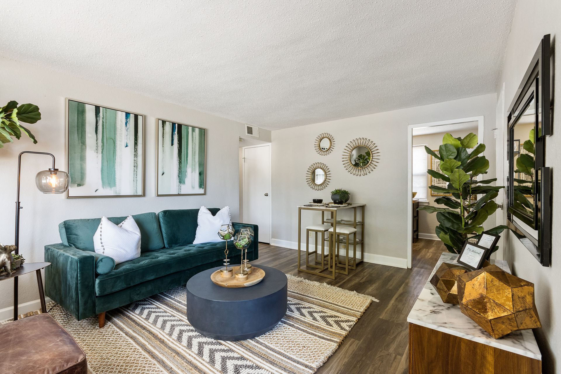 - Wood-Style Flooring and Plush Carpeting